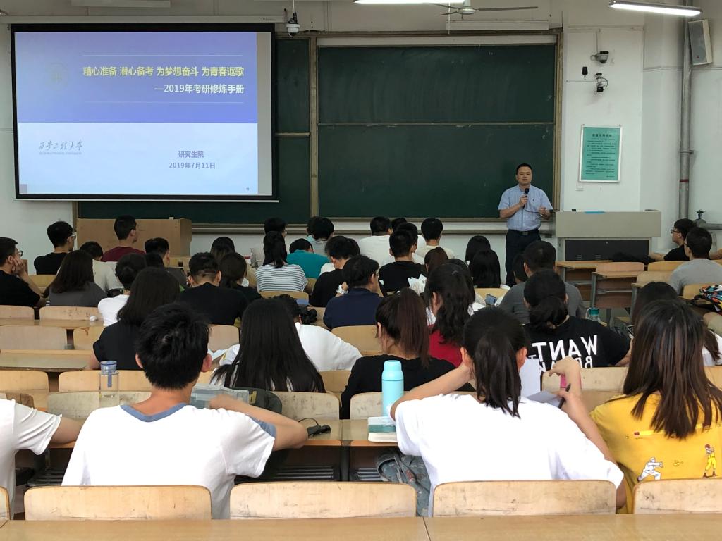 2019年7月11日,bw必威西汉姆联官方网站在临潼校区教学楼B-133室召开2019年考研动员会。参加会议的有学院副院长强天伟、学生工作办公室主任凌旭、2016级辅导员王春元及2016级全体学生。会议由凌旭主持。