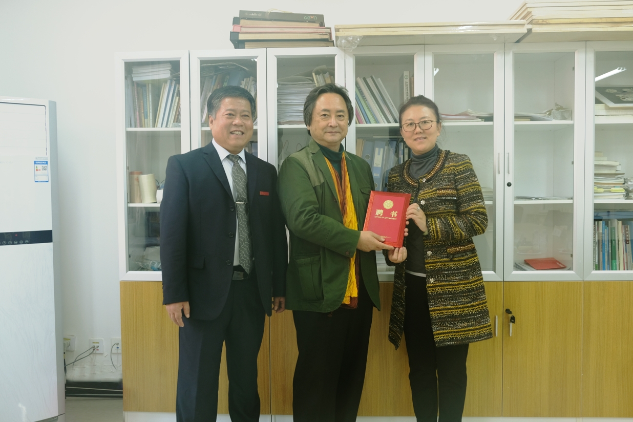 当天下午,学院负责人、景观艺术系部分教师与松岗拓公雄教授进行了座谈。座谈会结合学院学科发展、环境设计专业建设,就如何开展与亚细亚大学之间的教师研修、访学及学术交流、科研合作、学生短期交流学习方面的合作进行了深入交谈。座谈会上,学院院长马云教授为松岗拓公雄教授颁发了聘书,聘请松岗拓公雄教授为必威西汉姆联官网客座教授。