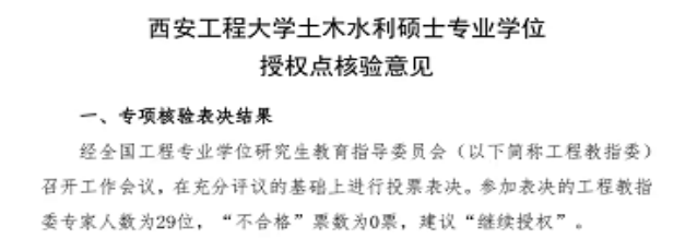 经全国工程专业学位研究生教育指导委员会专家审核,必威西汉姆联官网土木水利硕士专业学位授权点于2024年1月23日全票通过专家核验,继续授权。
