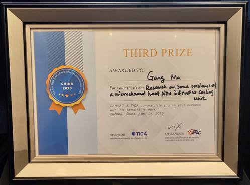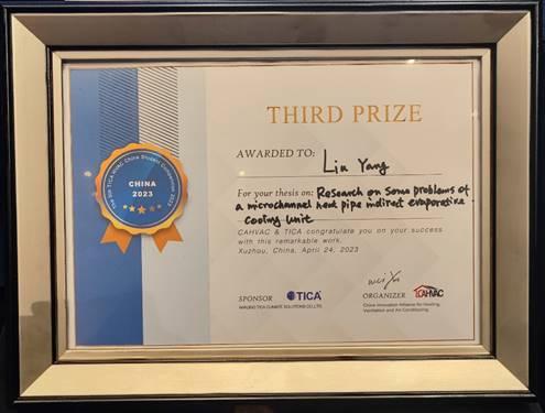 2023年4月24日,由暖通空调产业技术创新联盟(CAHVAC)与南京天加环境科技有限公司(TICA)联合主办的第五届“天加杯”全国暖通空调学生科技竞赛答辩会在江苏徐州举行。本次答辩会全程采用英文答辩。必威西汉姆联官网黄翔教授指导的研究生杨柳、马钢凭借作品“Research on some problems of a microchannel heat pipe indirect evaporative cooling unit”荣获三等奖。