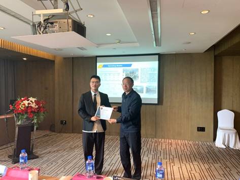 全国建环专业评估委员会主任、清华大学李先庭教授为研究生杨柳颁发参赛证书