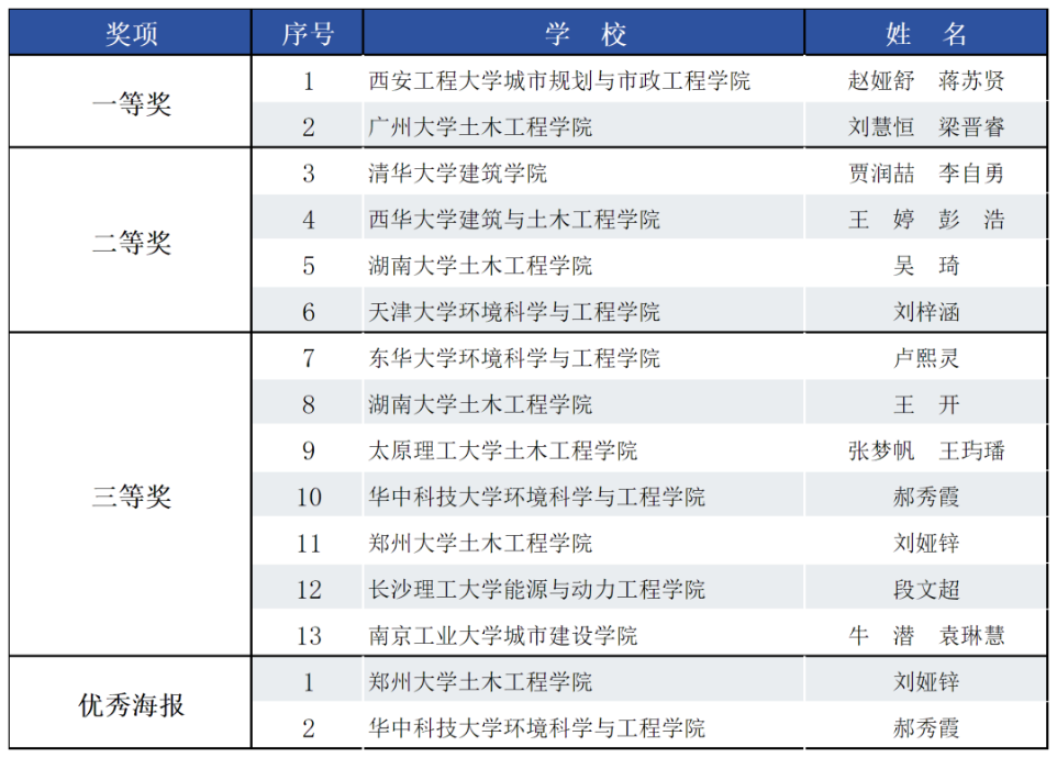 第六届“天加杯”全国暖通空调学生科技竞赛最终获奖名单