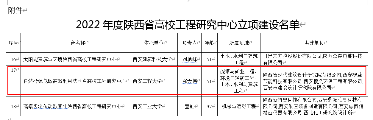 近日,陕西省教育厅确定55个工程中心为陕西省高校工程研究中心立项建设,bw必威西汉姆联官方网站申报的“自然冷源低碳高效利用陕西省高校工程研究中心”获批立项建设。