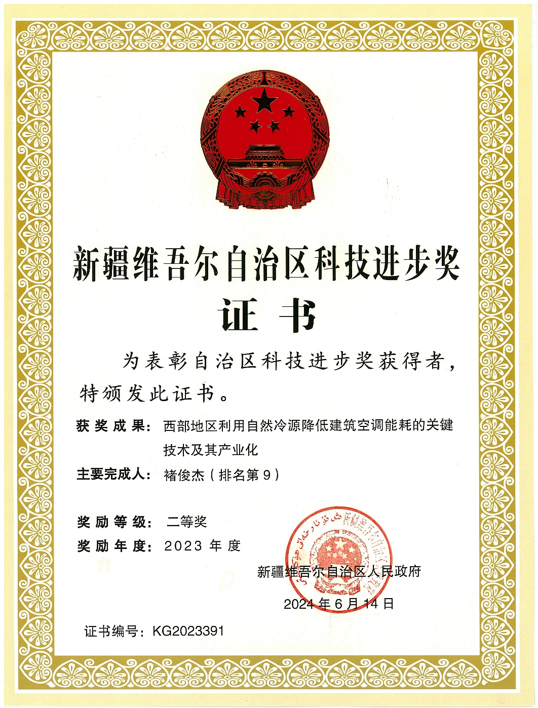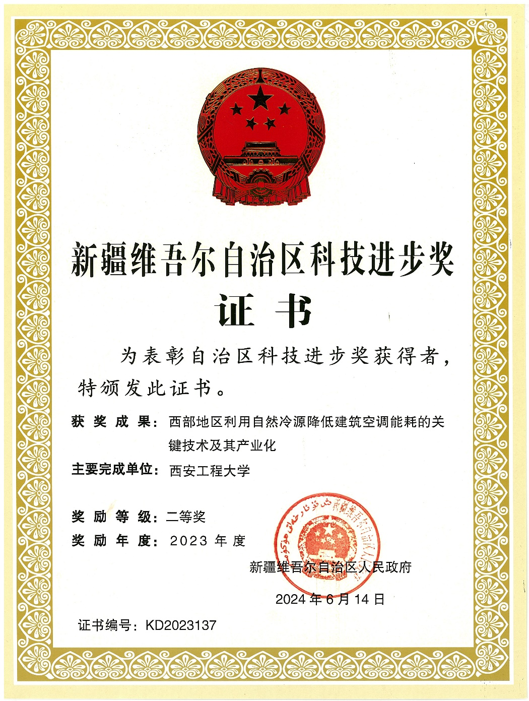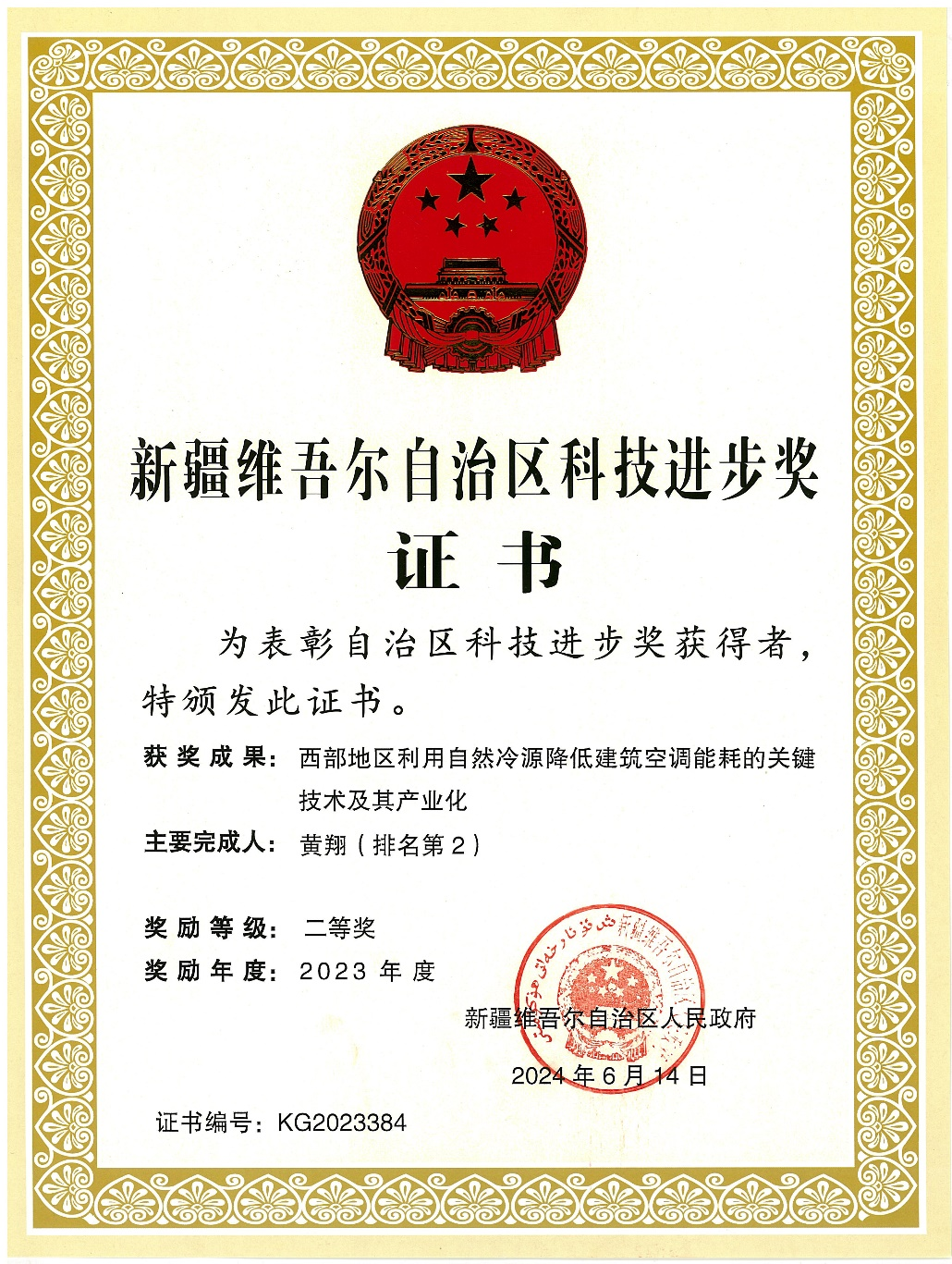 2024年11月20日,新疆科技创新大会在乌鲁木齐召开,2023年度新疆自治区科学技术奖揭晓。其中我校与新疆建筑设计研究院有限公司、中国建筑科学研究院有限公司等单位联合申报的“西部地区利用自然冷源降低建筑空调能耗的关键技术及其产业化”项目获得2023年度新疆自治区科学技术进步二等奖,其中我校为第2完成单位,我校bw必威西汉姆联官方网站黄翔教授、褚俊杰博士获此殊荣。