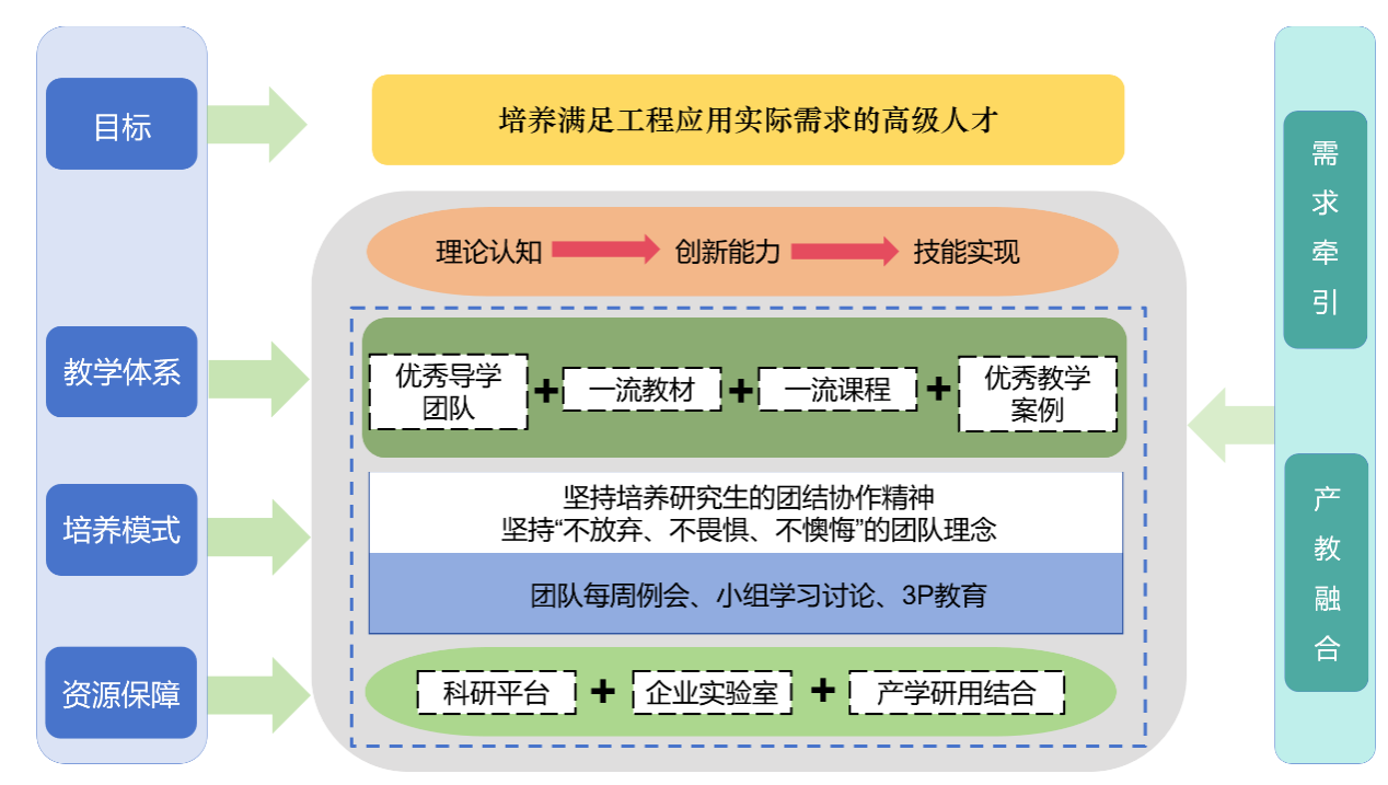 (2)提出“3P”教育理念,将“实践-汇报-创造”贯穿于研究生培养全过程。“实践”培养研究生动手能力和解决复杂工程问题能力。“汇报”培养研究生归纳总结和交流能力。“创造”提高升研究生的创新思维、逻辑思维和问题解决能力。三者有机结合,为行业培养技术创新型人才。