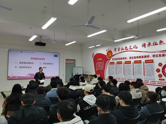 学院院长助理、实验中心主任胡星哲对实验室安全问题进行强调说明。他讲解了实验室环境安全、实验设备安全、实验药品安全以及实施管理措施和责任处罚等方面内容,特别强调了有化学试剂和高温、高压设备等实验室的管理规定。并对研究生提出了几点要求:一是在思想上重视实验室安全建设,杜绝安全隐患;二是行为上要自觉,严格做好实验室卫生环境的维护以及精密仪器的管理,杜绝安全隐患,并做好实验记录单的登记;三是提升责任感,加强实验管理制度的学习和宣传,并严格按照实验安全管理规范要求自己。最后,胡星哲老师还再次重申:每一位研究生需通过实验室管理处组织的的实验室安全学习考核,才能获得实验室预约使用资格。