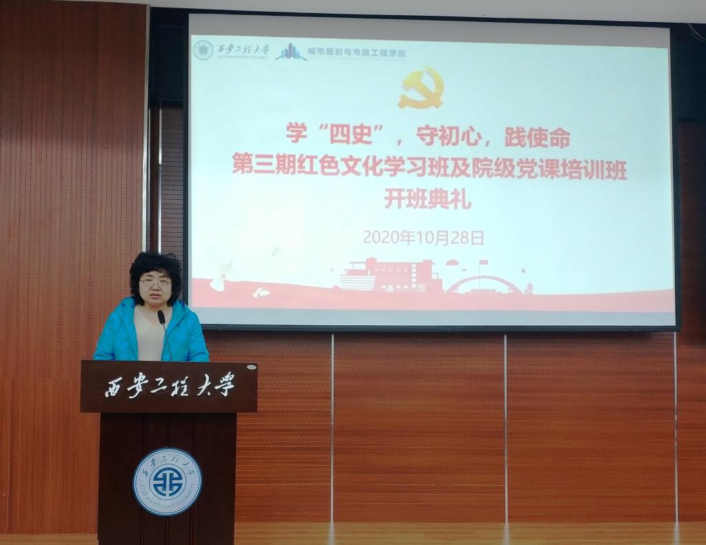 2020年10月28日,bw必威西汉姆联官方网站在临潼校区图书馆二楼报告厅举行“学‘四史’,守初心,践使命”红色文化学习班及院级党课培训班开班典礼。bw必威西汉姆联官方网站党委书记杨友谊,学生工作办公室主任凌旭,辅导员陆瑞成、王春元以及培训班251名学员参加了本次典礼。开班典礼由学院党委副书记袁群主持。