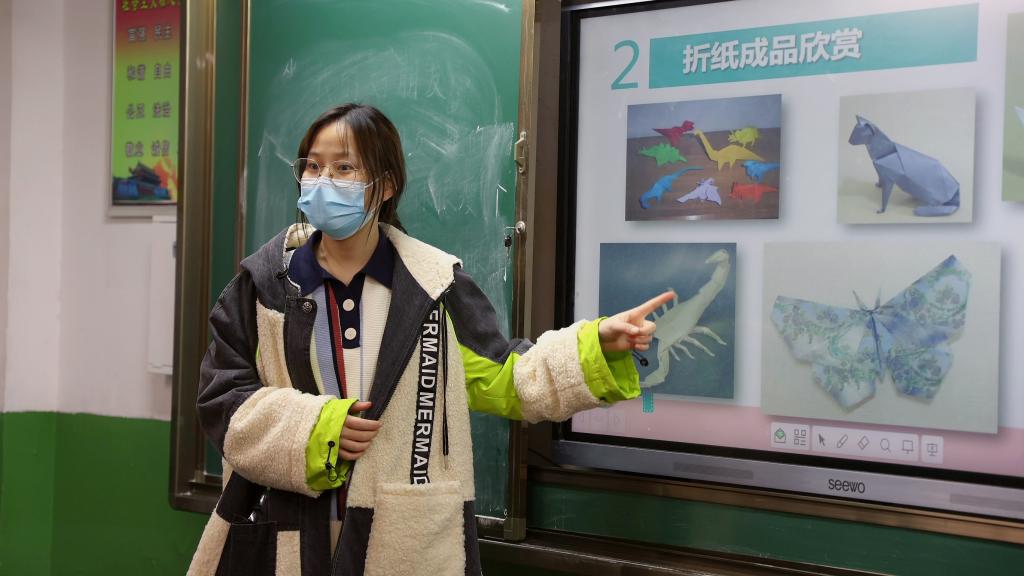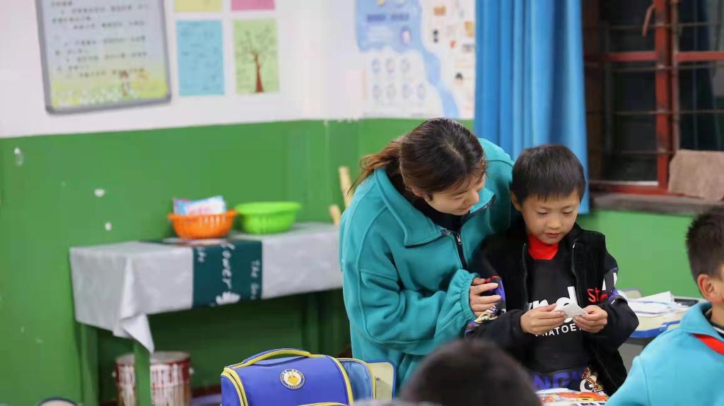 针对博睿小学的“急难愁盼”,此次党日活动以“美育筑梦课堂”为主题,特别组织有艺术特长的学生党员,党员们先使用多媒体向同学们展示了折纸和绘画作品,然后让同学们挑选自己喜欢的卡纸并手把手进行现场指导,同学们在完成自己的作品后流露出开心的笑容,也让党员们理解到了“我为群众办实事”的真正意义。