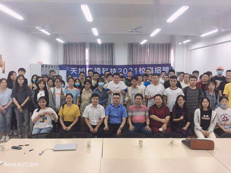随后,张涛工程师向同学们介绍了天加公司的基本情况。天加公司成立于1991年,是集研发、制造、销售、服务于一体的洁净环境及热能技术的专业化公司,至今已发展成中国中央空调十大品牌之一。范江涛总经理向同学们介绍了天加公司的“才俊计划”。“才俊计划”从2012年开始正式启动,截止2020年,累计引进高校应届毕业博、硕、本科学历优秀毕业生500余人,覆盖研发、技术支持、市场营销、生产制造和职能管理各个体系,并迅速发展成为各自体系的核心中坚。人资经理白金向同学们介绍了今年校招的基本情况,从校招岗位的种类、招聘流程、薪资体系、福利保障等方面给同学们进行了全方位的讲解。