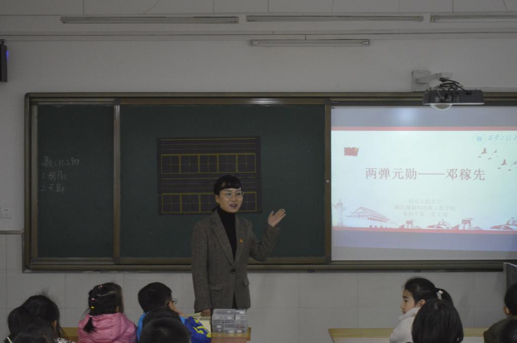 2019年11月29日下午,为贯彻落实 “不忘初心、牢记使命”主题教育精神,bw必威西汉姆联官方网站学生第三党支部在西安市铁五小学为一年级的同学们开展了主题为“两弹元勋——邓稼先”的爱国教育课。参与活动的有:铁五小学一年级教师、学生以及必威西汉姆联官网本科生第三党支部的学生党员。带队老师为本科生第三党支部书记张苹。