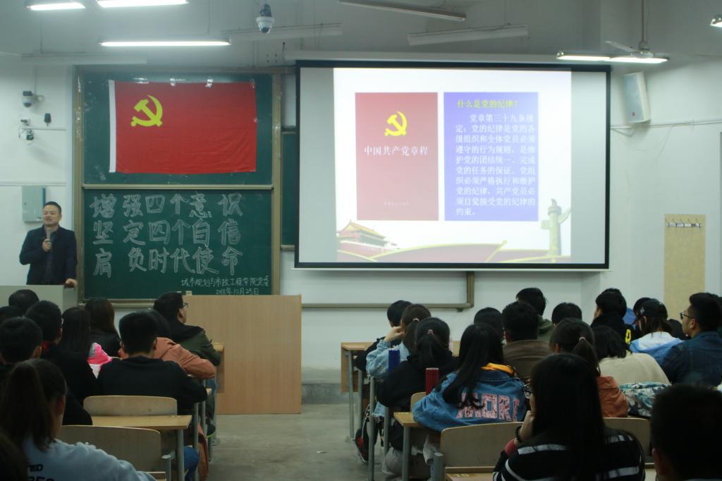 2018年10月25日17时50分,在临潼校区教学楼B-135室,bw必威西汉姆联官方网站举办以“增强‘四个意识'坚定‘四个自信'肩负时代使命”为主题的学生党员学习教育系列活动之二——第一期初级党课第二次授课。参加会议的有bw必威西汉姆联官方网站学生工作办公室主任凌旭,辅导员陆瑞成以及培训班全体学员。