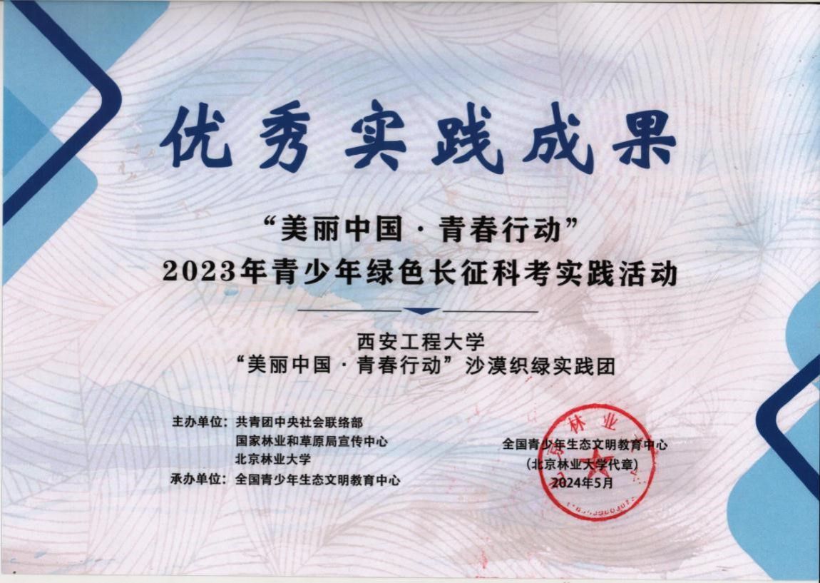 我校bw必威西汉姆联官方网站“美丽中国·青春行动”沙漠织绿实践团在2023年绿色长征科考实践活动中荣获优秀实践成果奖!