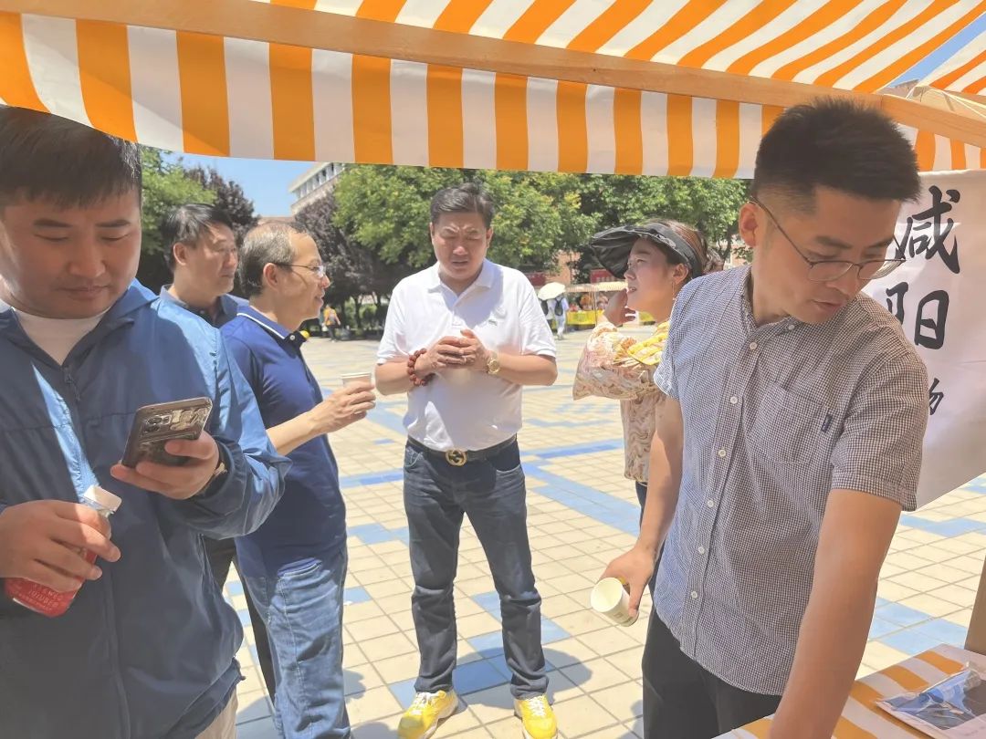 6月14日上午,bw必威西汉姆联官方网站乡村振兴办主任赵宏、副主任樊运清;bw必威西汉姆联官方网站党委书记王劲伟等领导与陕西御水涵山文化传媒有限公司董事长房琦共同参观了大学生线下助农推广活动,由陕西御水涵山文化传媒有限公司总经理刘晓娜介绍活动现场,以及推广赛事、大学生助农推广团。