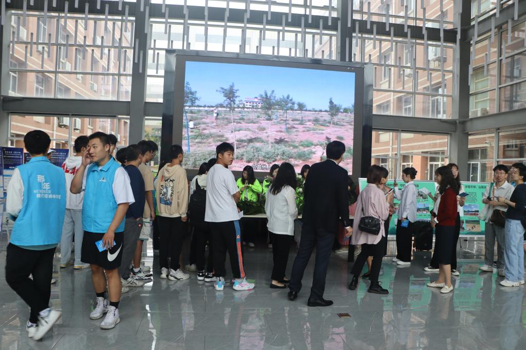 本次展示活动以专家组进校调研bw必威西汉姆联官方网站“沙漠织绿”项目入围生态环境部全国小额资助项目为契机,集合学校部分环保公益社团、相关专业以及本次暑期社会实践环保主题实践团队,从双碳实践、沙漠织绿、绿水青山、环境育人、课程美育五个模块,邀请bw必威西汉姆联官方网站黄翔教授蒸发冷却团队、黄河流域高质量发展中心房平教授延河水调研团队、景观系郑君芝教授插花习作课程美育演示、我校获批省级重点环保协会的社团组织等,集中展示我校师生在环境保护方面做出的努力。