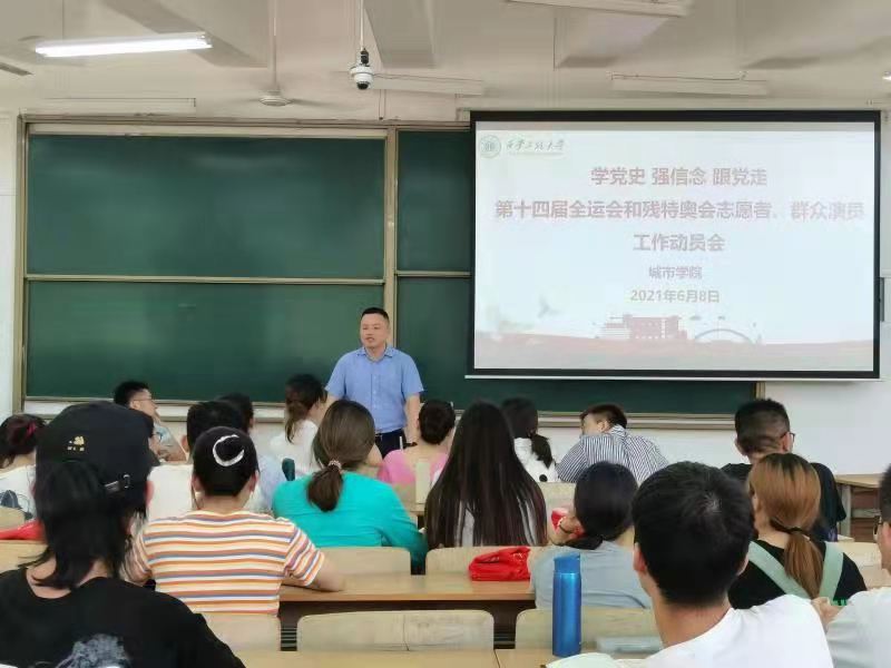 bw必威西汉姆联官方网站于6月8日中午在临潼校区B137教室召开第十四届全运会和残特奥会志愿者、群众演员工作动员会。学工办主任,团总支书记凌旭、辅导员陆瑞成以及学院全部志愿者,群众演员参加了大会。