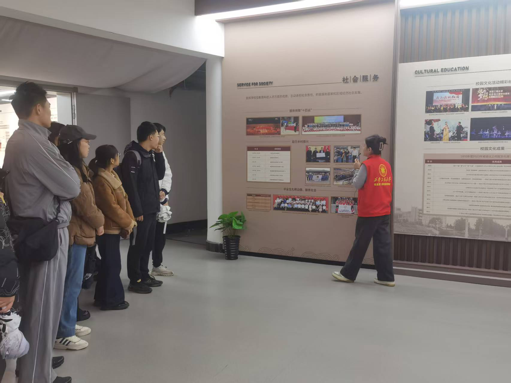 在讲解员的引导下,同学们依次参观了“百年办学 薪火相传”“党建引领 立德树人”“改革创新 内涵发展”“团结奋进 面向未来”四大展区。馆内一幅幅珍贵的历史照片与实物资料,生动再现了学校自1912年创办以来的发展历程。通过讲解员细致的解说,新生们仿佛穿越时空,回到了学校初创时期的艰苦岁月。