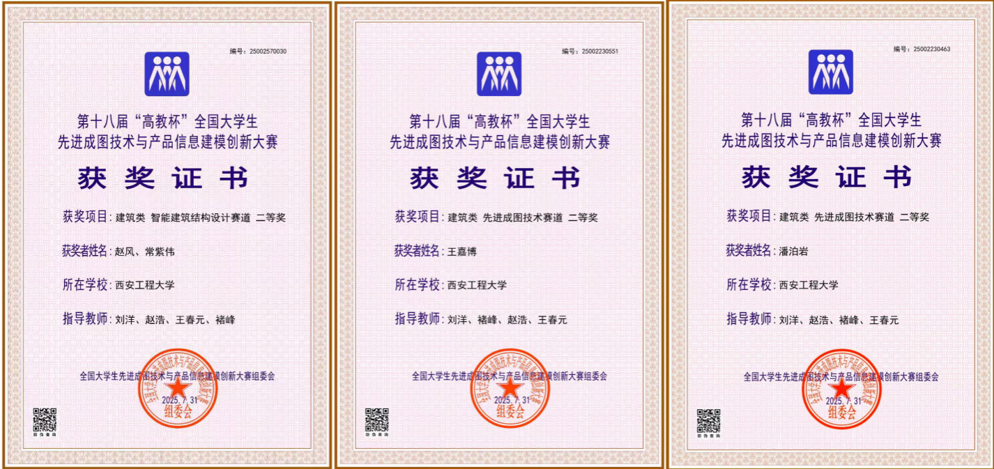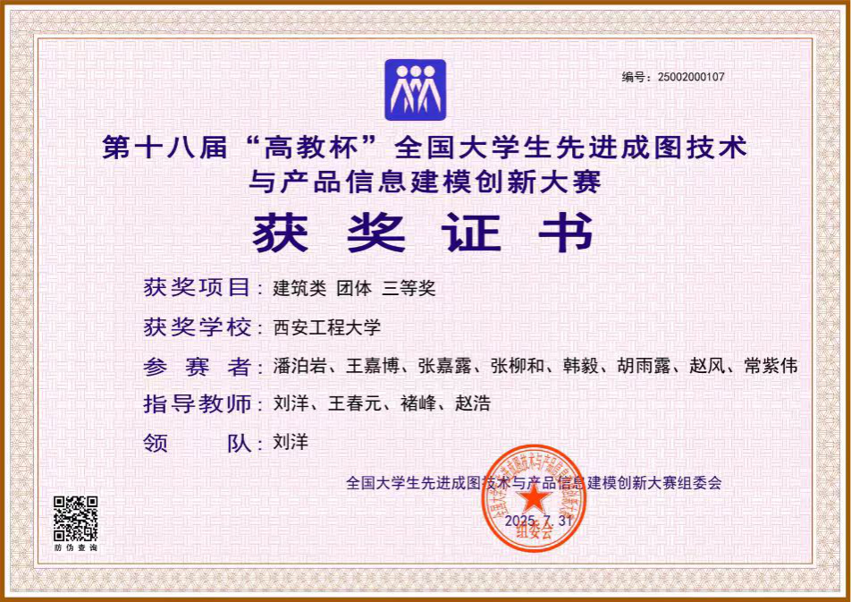 自去年10月开始,经校内培训与初期选拔,必威西汉姆联官网指导老师刘洋、赵浩、褚峰、王春元带领必威西汉姆联官网11名学生经过激烈角逐,在省赛中荣获获得个人一等奖1项,二等奖1项,三等奖7项,智能建筑结构设计赛道三等奖1项,BIM创新应用赛道建筑类团体三等奖1项。晋级国赛后,22级张柳和、张嘉露、赵风、常紫伟,23级王嘉博、胡雨露、韩毅,24级潘泊岩等8名同学经过艰苦训练和激烈比赛,取得个人二等奖2项,智能建筑结构设计赛道二等奖1项,并获得建筑类团体三等奖1项。