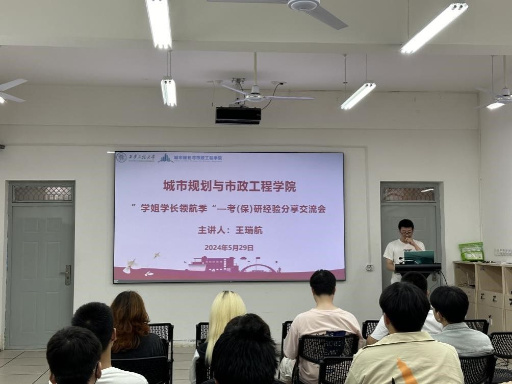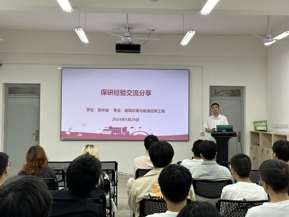 交流会上,来自2020级土木工程专业的王瑞航、环境设计专业的康彤、给排水科学与工程专业的管东亮、建筑环境与能源应用工程专业的郭中骏分别从自身经历出发,向与会同学详细讲解了考(保)研的基本时间节点和注意事项,也分享了自身在考(保)研期间的学习方法与经验。与会同学积极参与,现场反响强烈。