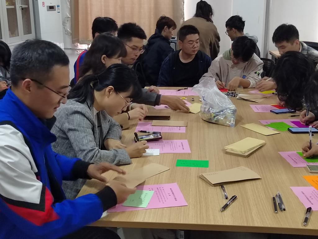 此次活动分为上下场。上半场的主题是“师生‘心桥’传递祝福 共同守护美好未来”,学院党委副书记鱼园、全体辅导员与各班心理委员在学院二级心理工作站——“心灵驿站”共同为同学们书写心灵祝福卡,并通过抽盲盒的形式送给学院全体同学,搭建起师生共同维护心理健康的“心桥”。