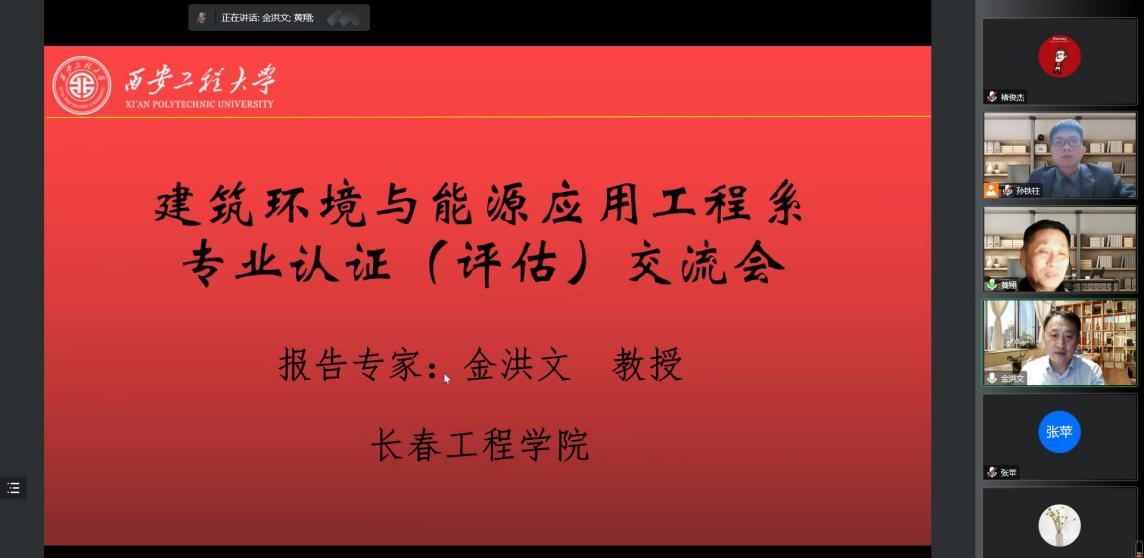 2022年11月9日,长春工程学院能动学院副院长、建环专业负责人金洪文教授应邀与bw必威西汉姆联官方网站教师在线上进行了建环专业评估(认证)经验交流与分享。学院教授委员会主任黄翔教授、房平副院长、强天伟副院长、建环系全体老师出席了此次交流会并进行了交流,会议由建环系主任孙铁柱老师主持。